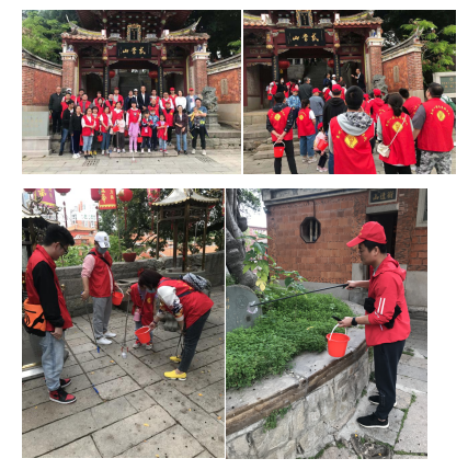 此次我们的志愿服务采用“游学参观+环境保洁+史迹宣传”的形式展开活动。志愿者们分别来到了真武庙、江口码头(文兴码头、美山码头),以及美山天妃宫这三个站点。
